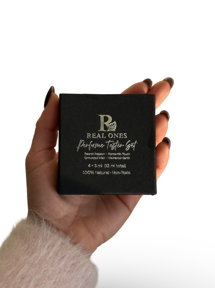 Test 4 premium natural perfumes before committing to a full bottle. Each scent is 100% plant-based, non-toxic, and alcohol-free — luxurious fragrance without the chemicals.