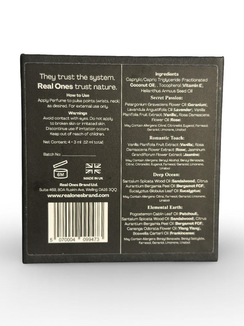Try 4 premium natural (Alcohol-Free) perfumes (2 Men’s, 2 Women’s) for just £9.99 — Experience how oil-based perfume wears on your skin.